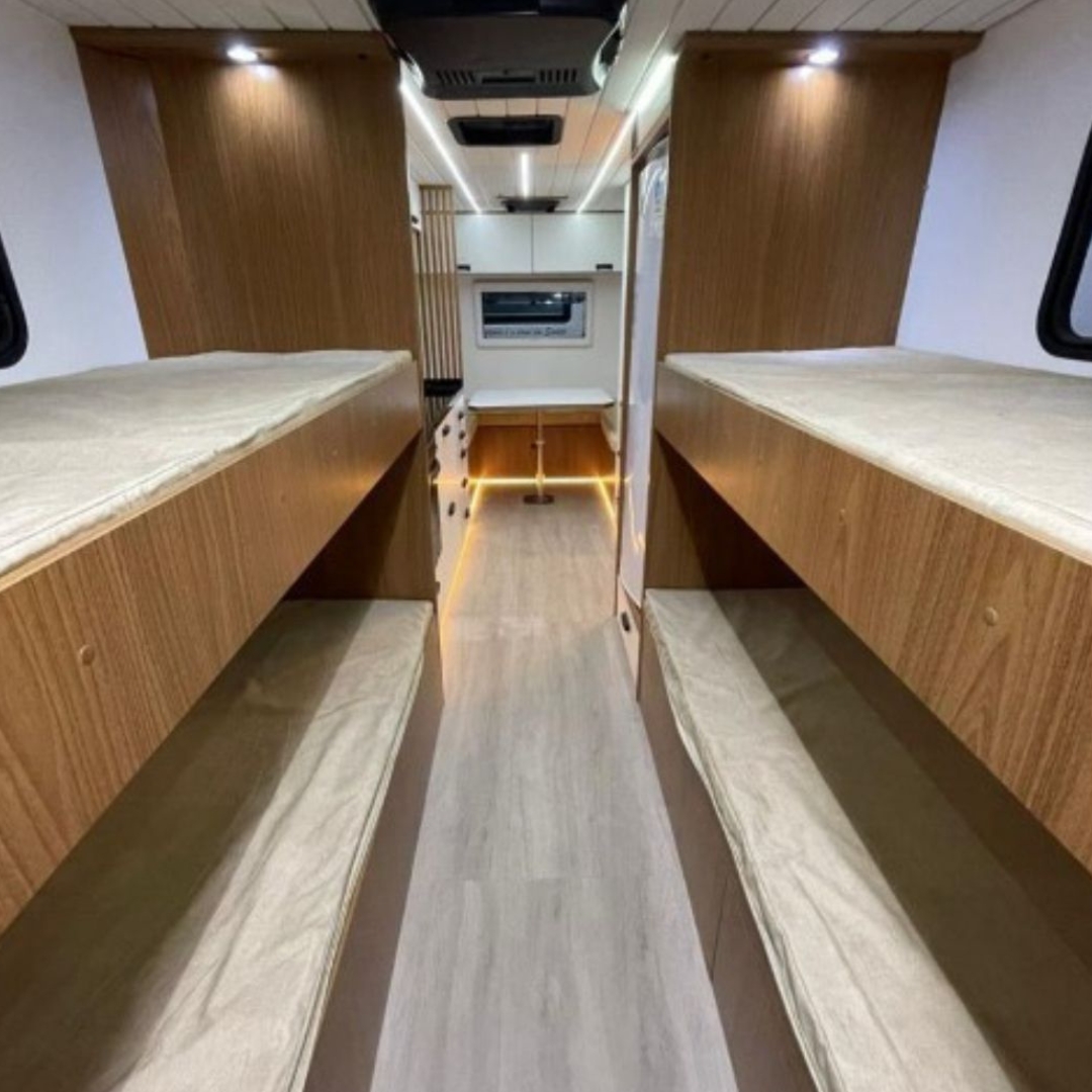 2 beliches com armário, ventilador e luz de leitura 12v individuais;