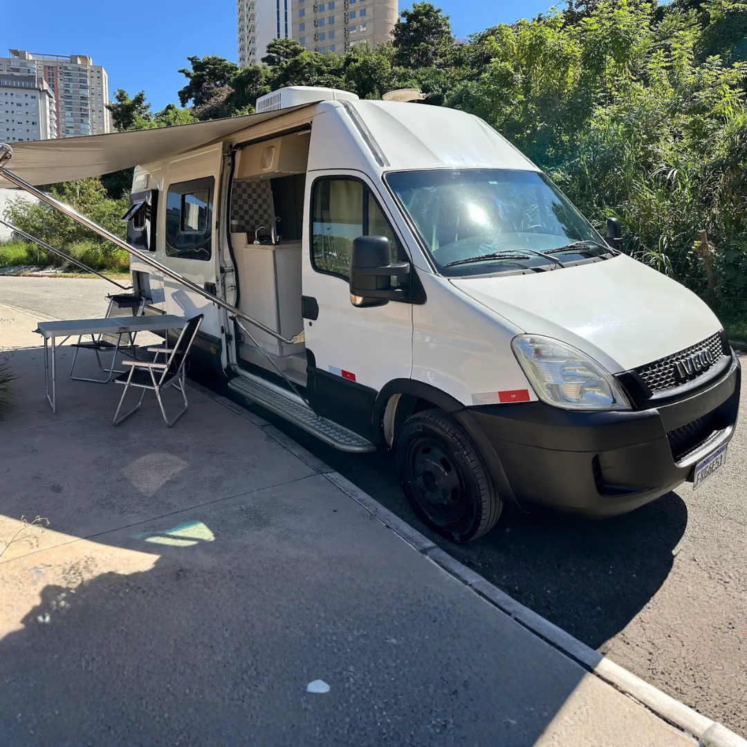 Motorhome montado sobre Iveco Daily 2013, com configuração completa e funcional, indicado para quem busca conforto, autonomia e praticidade em viagens. O layout atende até 4 pessoas, com cozinha equipada, banheiro completo e diversos itens de apoio para uso imediato.