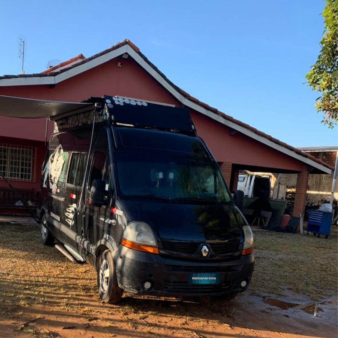 Motorhome montado sobre Renault Master, com estrutura completa para viagens, oferecendo autonomia energética, reservatórios generosos de água e diversos itens de conforto para uso prolongado na estrada.