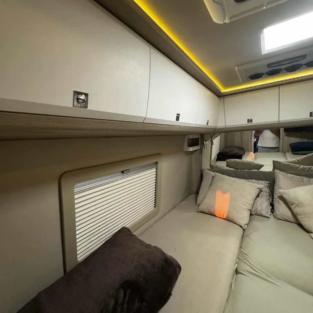 Motorhome Santo Inácio 7.3, construído sobre Mercedes-Benz Sprinter 517, com baixíssima quilometragem e projeto voltado para alto padrão construtivo, autonomia real e conforto premium. Desenvolvido com materiais de patente exclusiva, soluções inspiradas na indústria aeronáutica e sistemas inteligentes de energia, climatização e segurança, o modelo entrega robustez, sofisticação e confiabilidade para viagens nacionais e internacionais.