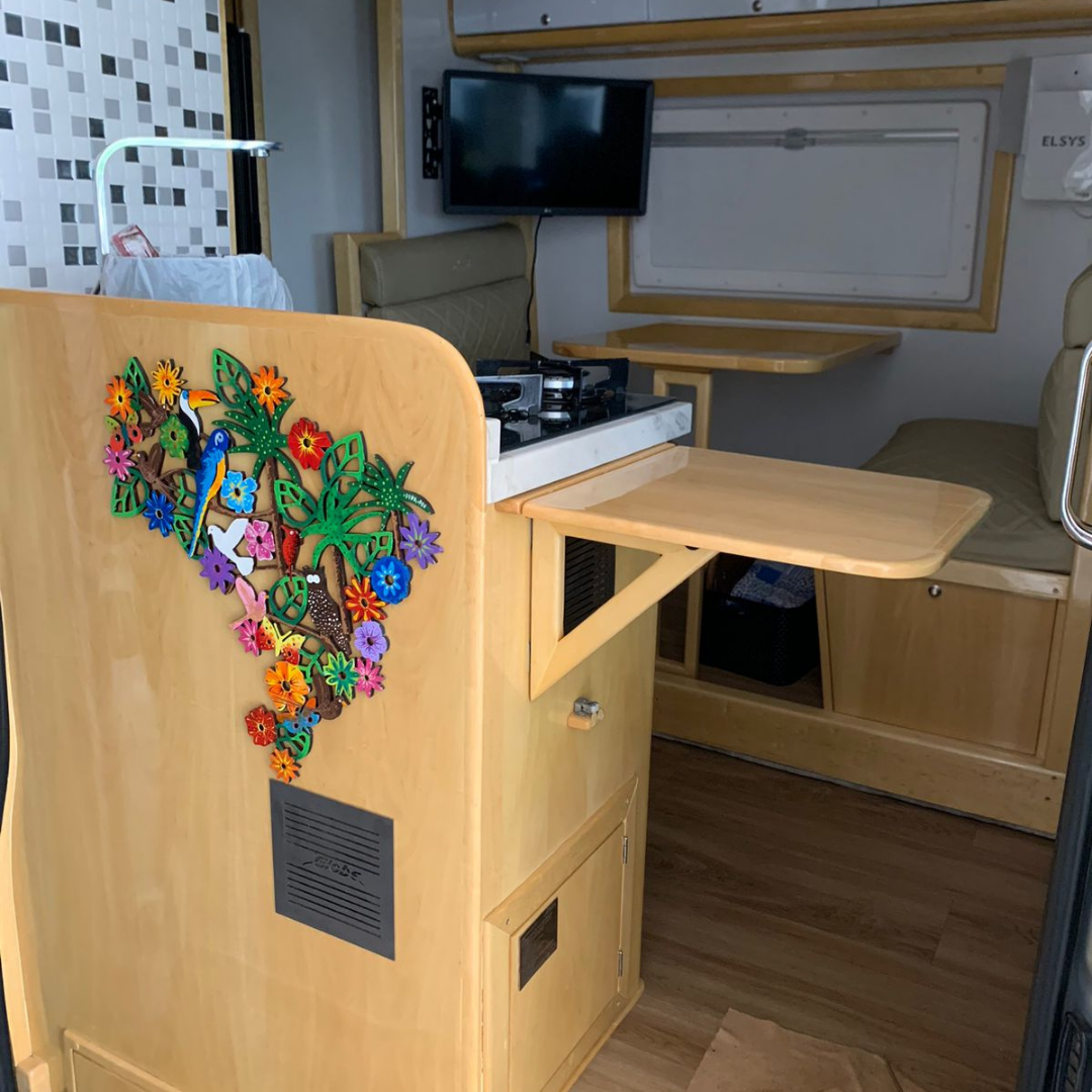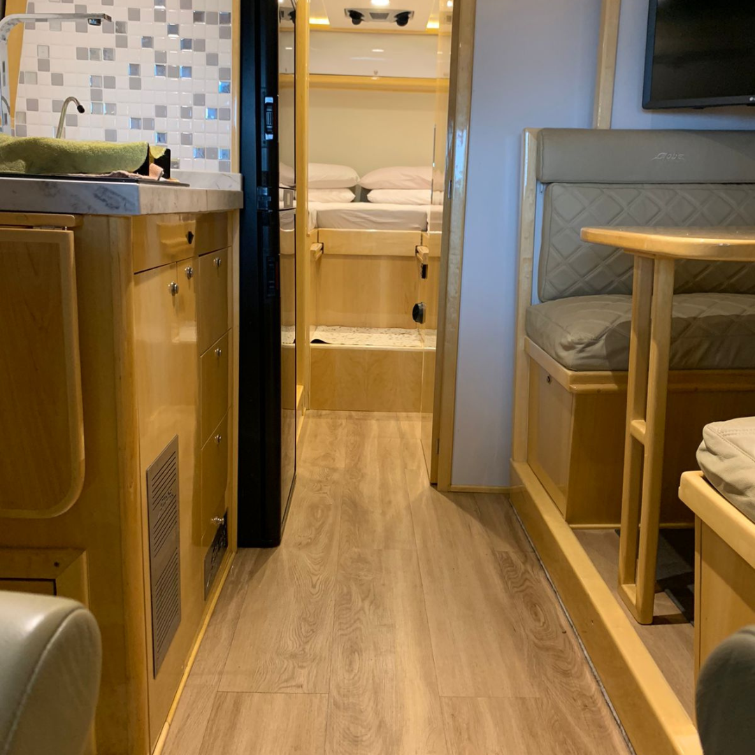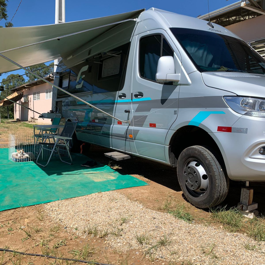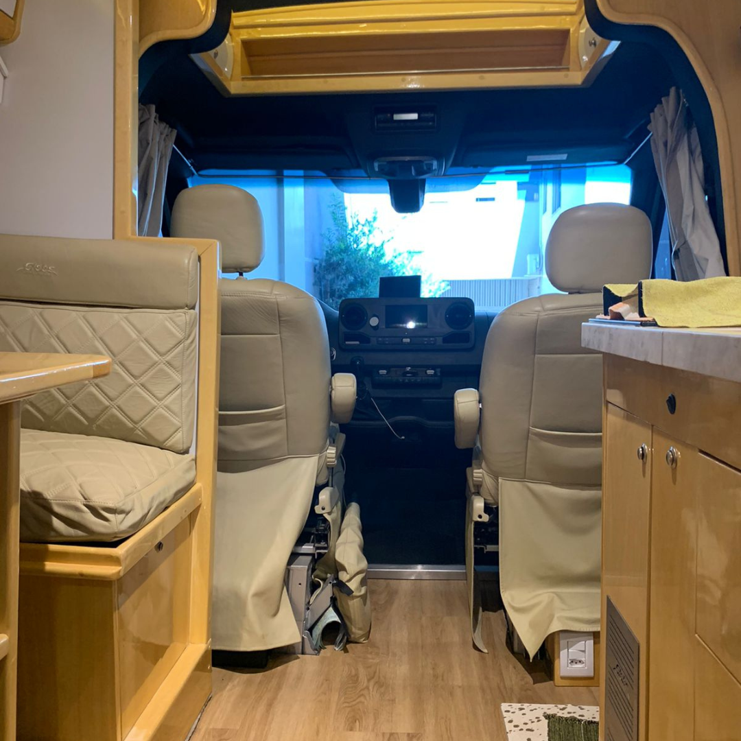 Motorhome montado sobre Sprinter 517, com projeto voltado para conforto elevado, autonomia e praticidade, destacando-se pela sala com slide-out, que amplia significativamente o espaço interno quando estacionado.